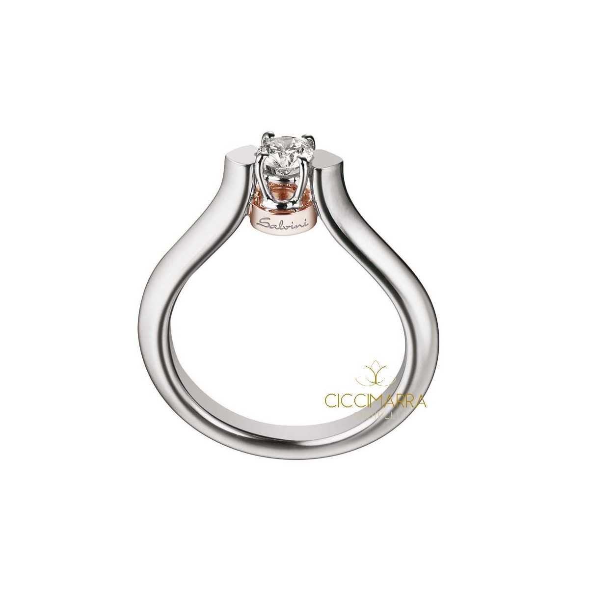 Ring der Toujours-Kollektion in 18 Karat Weißgold Solitaire-Typ mit Basis aus Herz und Diamant-Abschnitt auf einer Basis aus Roségold gesetzt
