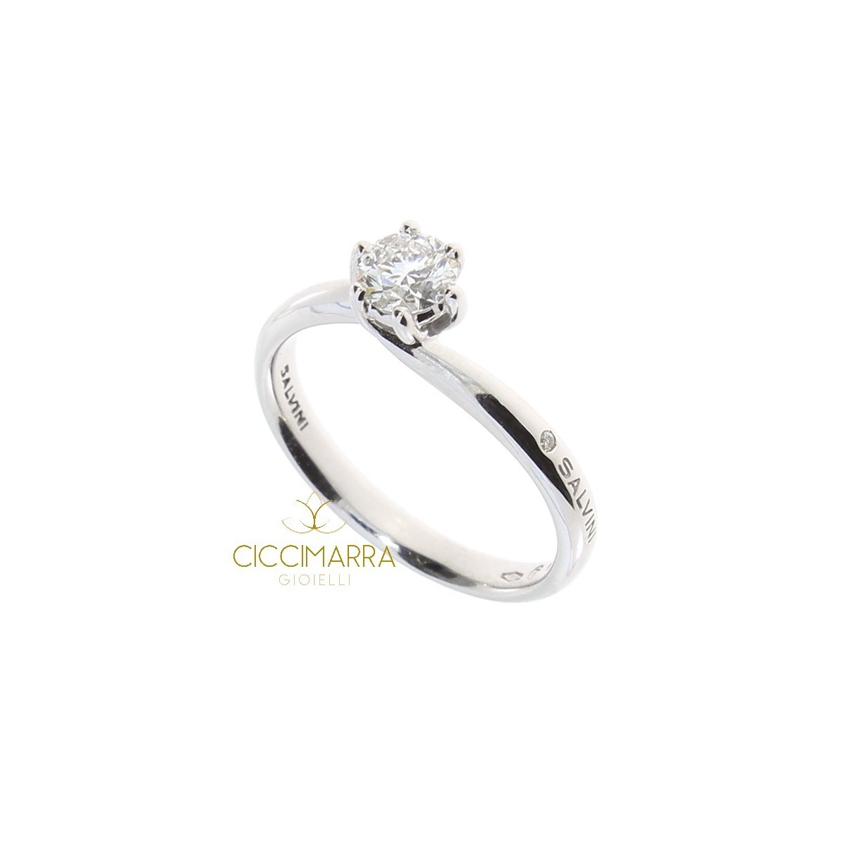 Solitaire mit Naturdiamanten im Brillantschliff von 0,22 ct, 6-Backen-Rahmen. Lavinia Linie in 18 Karat Weißgold.