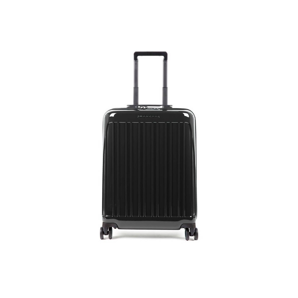 PIQUADRO Ultra schlanker vierrädriger Kabinenwagen aus der Seeker-Kollektion aus glänzend schwarzem Polycarbonat.
