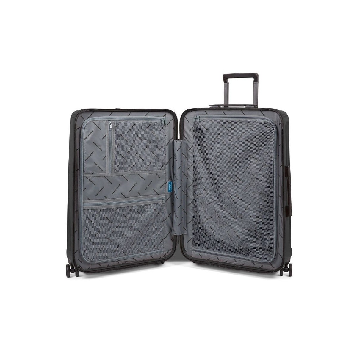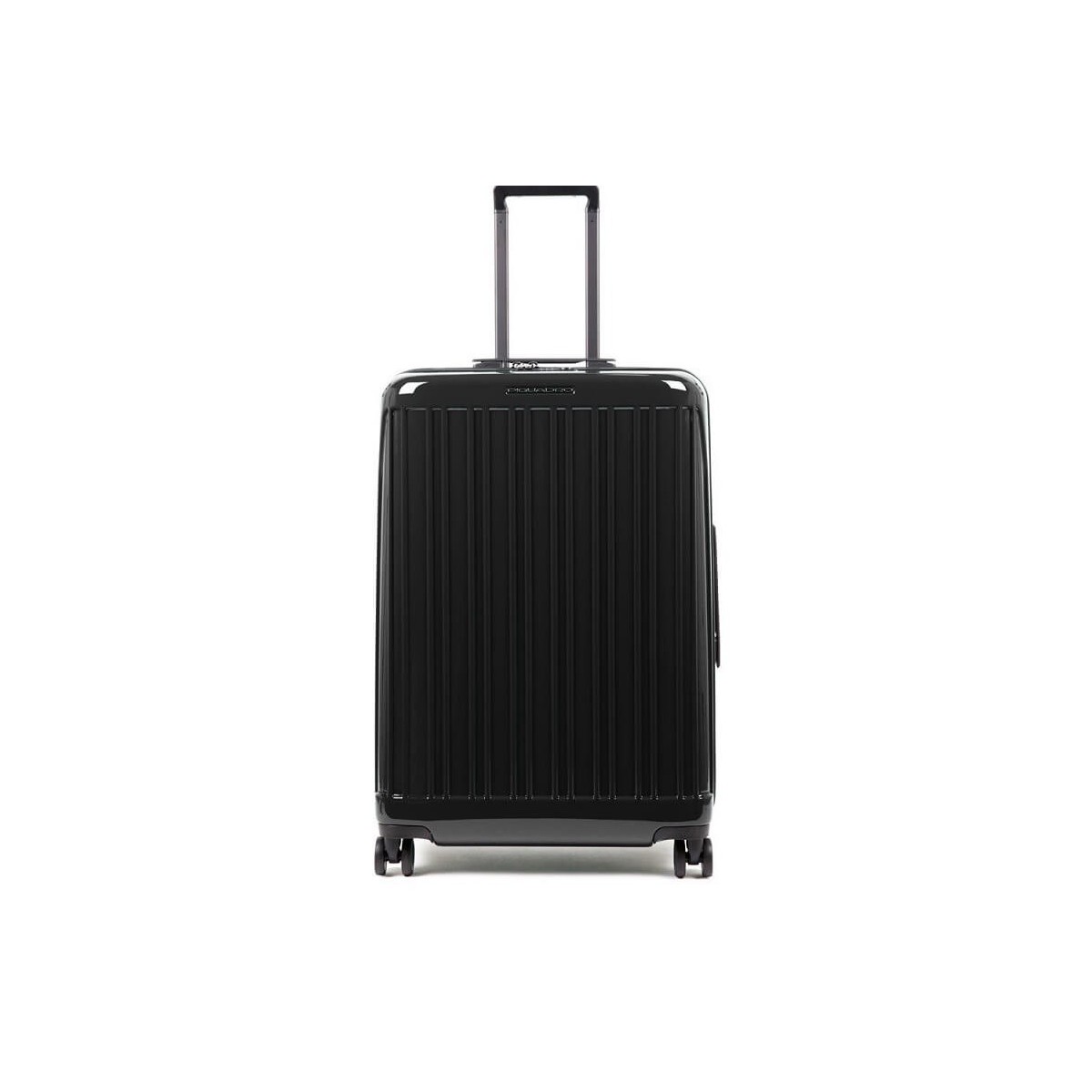 PIQUADRO Mittelstarrer vierrädriger Wagen aus der Seeker-Kollektion aus glänzend schwarzem Polycarbonat.