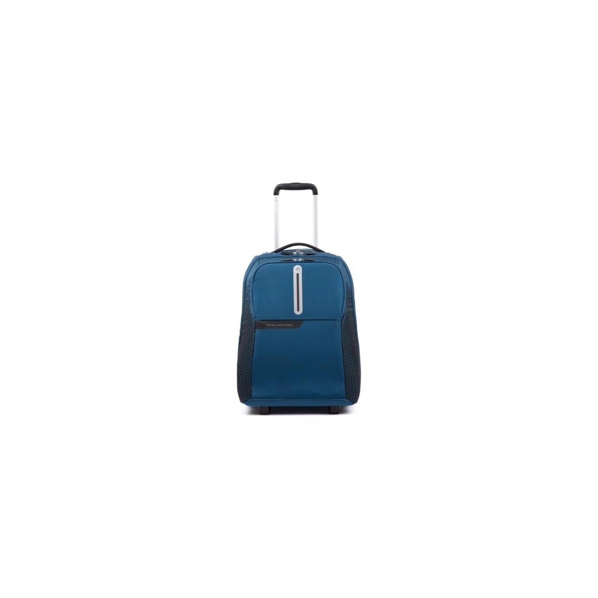 Piquadro Trolley / Reiserucksack aus der Coleos-Linie aus blauem technischem Stoff und kleinen Metalldetails. Einziehbare Schultergurte in der Gesäßtasche