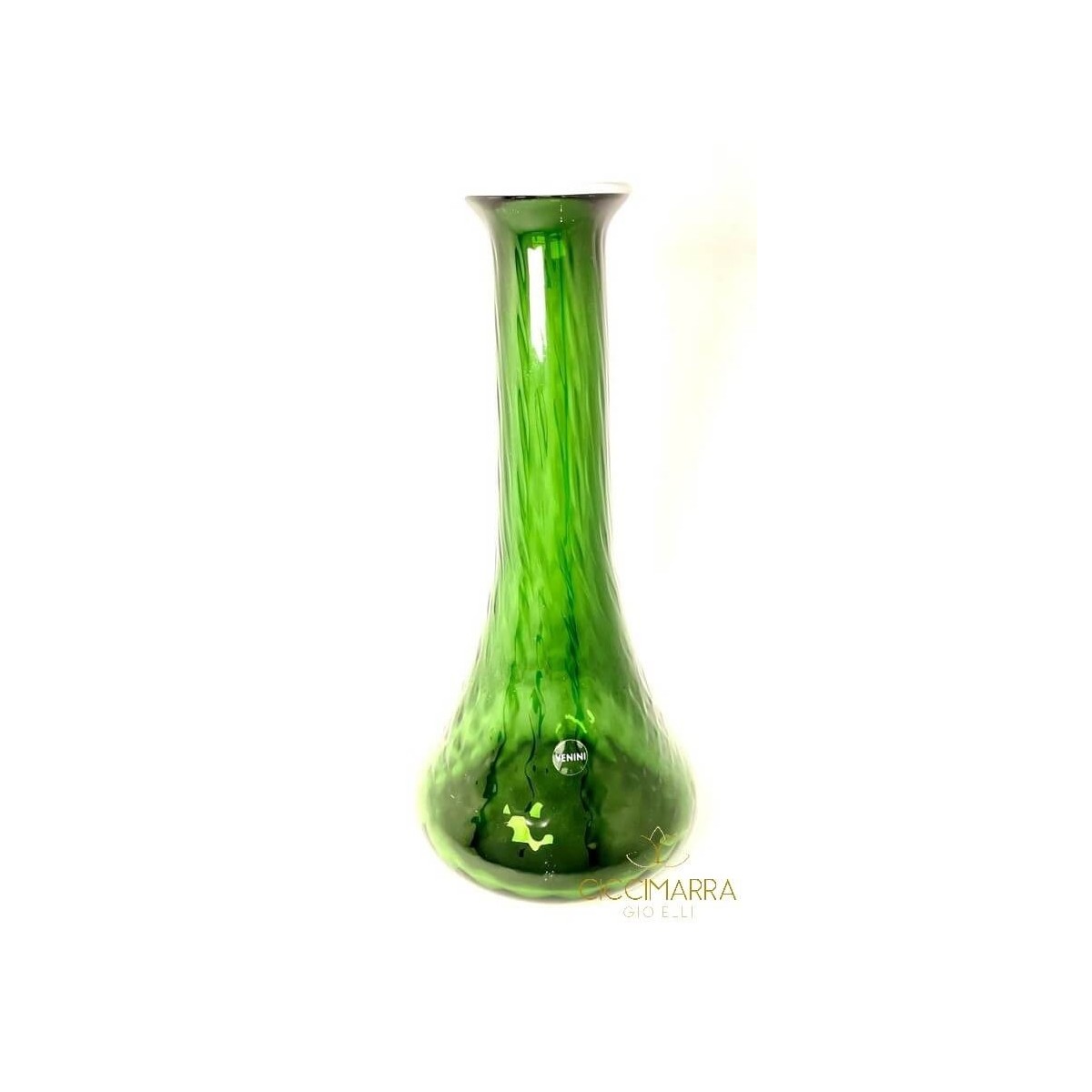 Monofiore Vase aus Muranoglas aus der kleinen Linie Reticoli. Grüne Farbe mit weißem Faden