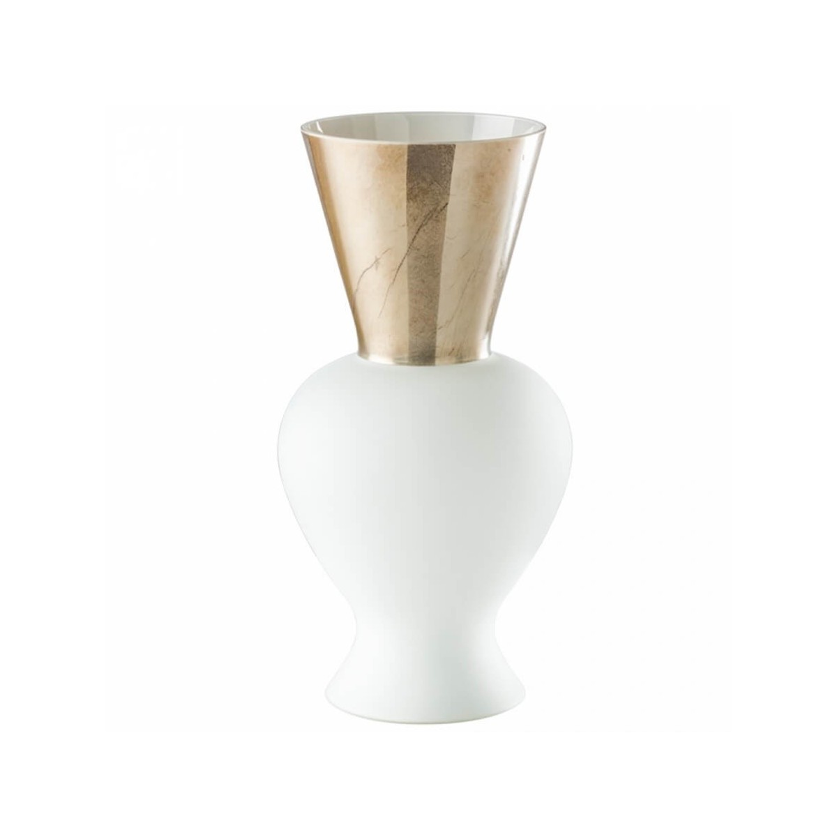 Re-Vase aus der Re-Regina-Principe-Kollektion, aus mundgeblasenem und handgefertigtem Murano-Glas, milchweiße Farbe mit Metalleffekt-Oberfläche