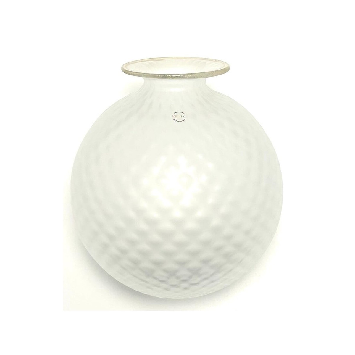 Muranoglasvase Monofiore Balloton groß mit Ballonton-Verarbeitung aus mattiertem Kristallglas und Rand mit Goldfaden