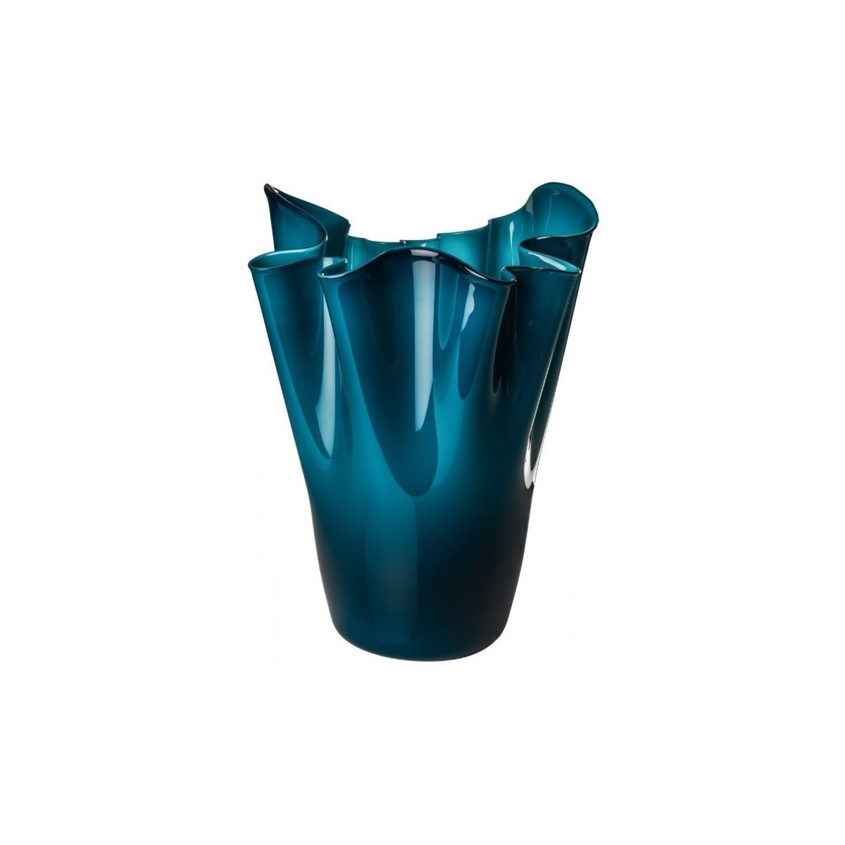 Murano Glas Vase Taschentuch aus Murano Glas Taschentuch Modell limitierte Auflage 99 Stück Opalino, Designer Fabio Bianconi und Paolo Venini Farbe grün Horizont