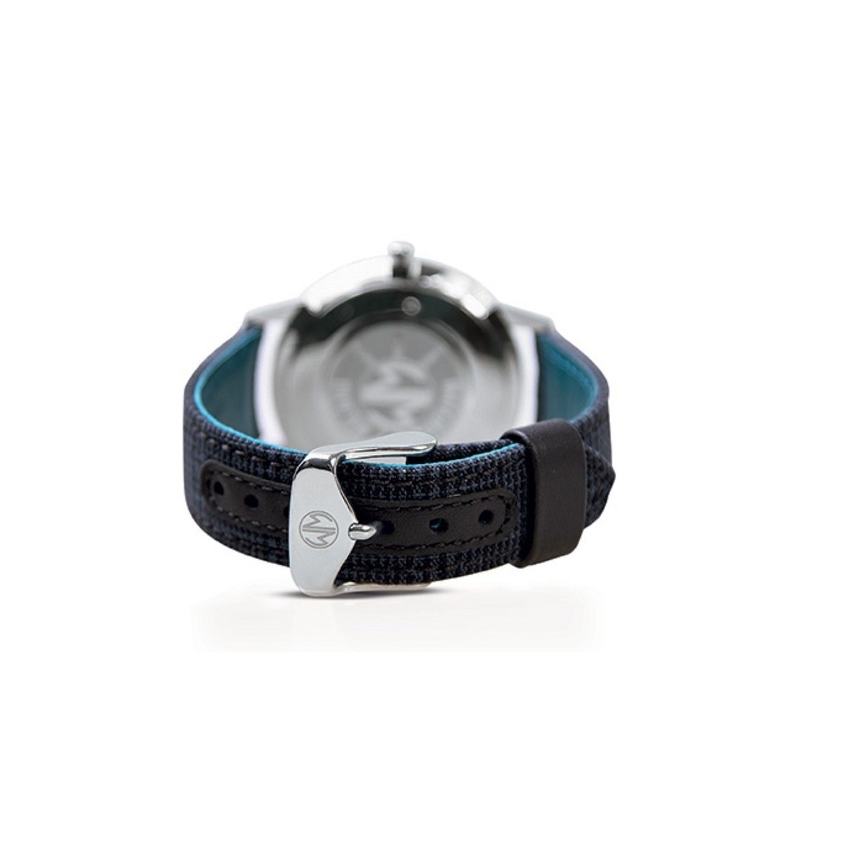 Uhrmacher Milan Linie Ambrogio Weinlese-Uhr mit blauem Zifferblatt, Leder und Textilarmband blau und grau karierten Hemd, Quarzwerk und Datumsangaben