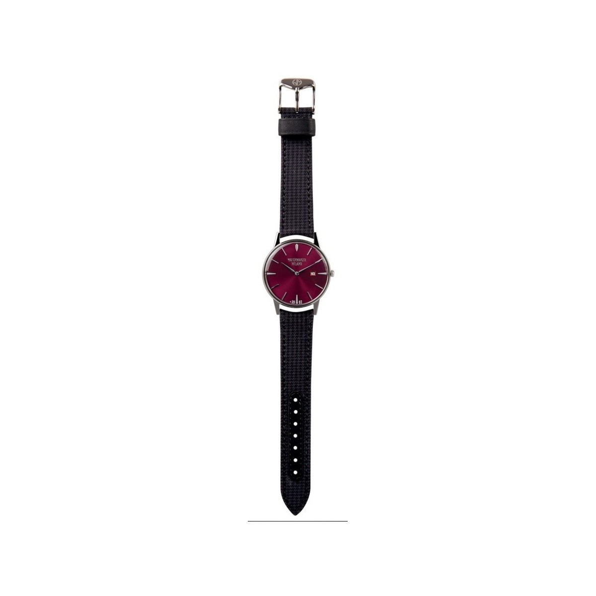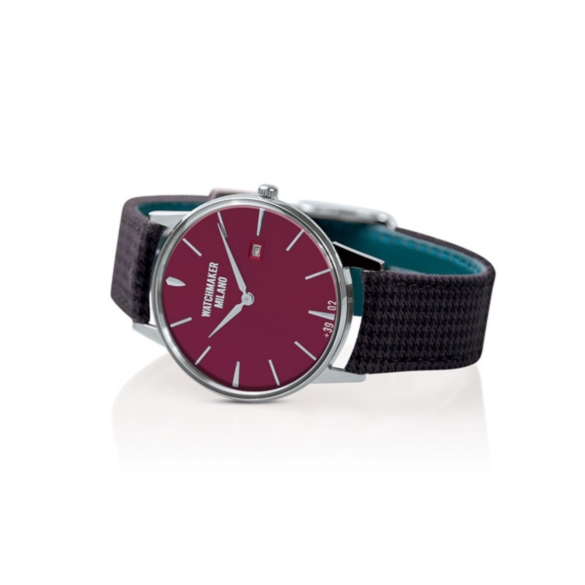 Watchmaker Milano Ambrogio Linie Weinlese-Uhr-rotes marsala Zifferblatt, Leder und Stoff Check schwarz und grau Band Quarzwerk und dater