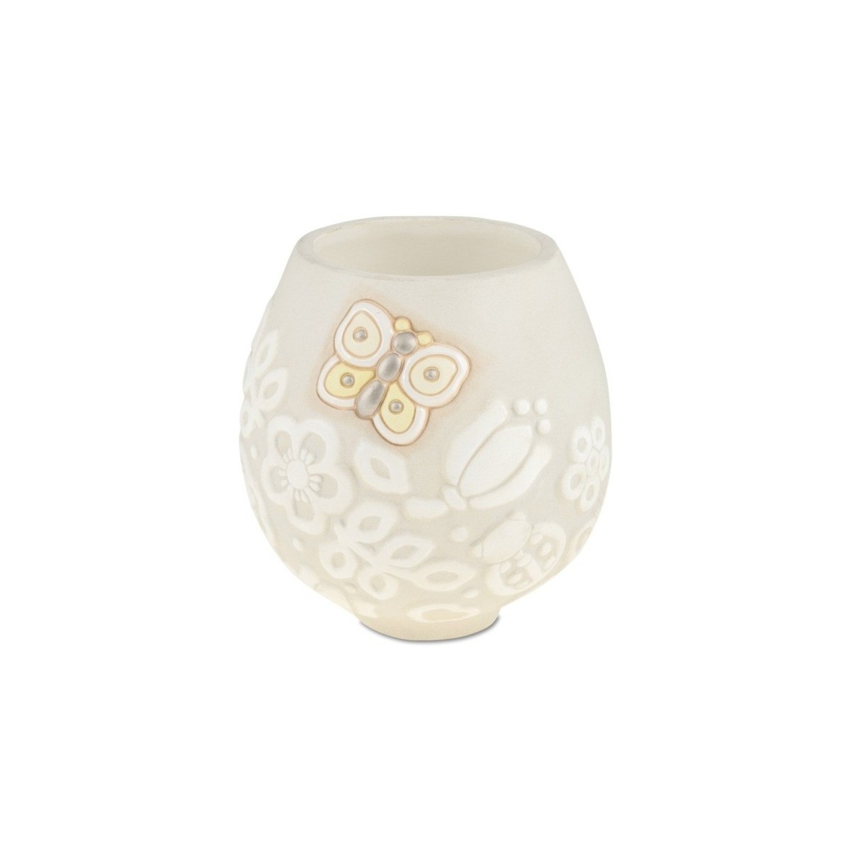 Thun Vase mittleres Prestige. durchschnittliche Schiff h 22 cm Keramik grau mit weißen Designs im Relief.