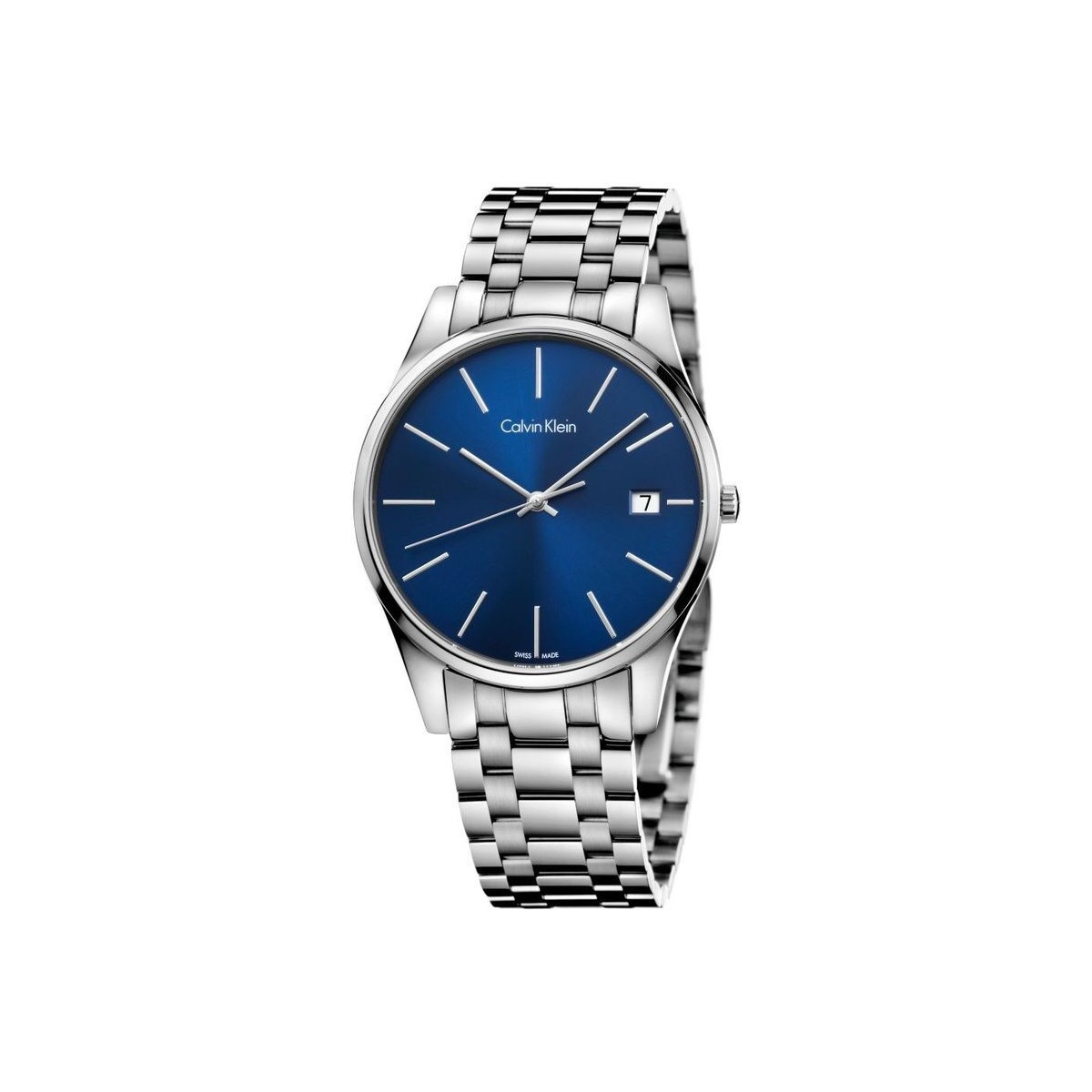 Unisex Time Watch mit Quarzwerk, Stahlband und Koffer, Blue Dial mit Datum, Silver Indicators und Hands und Butterfly Closure