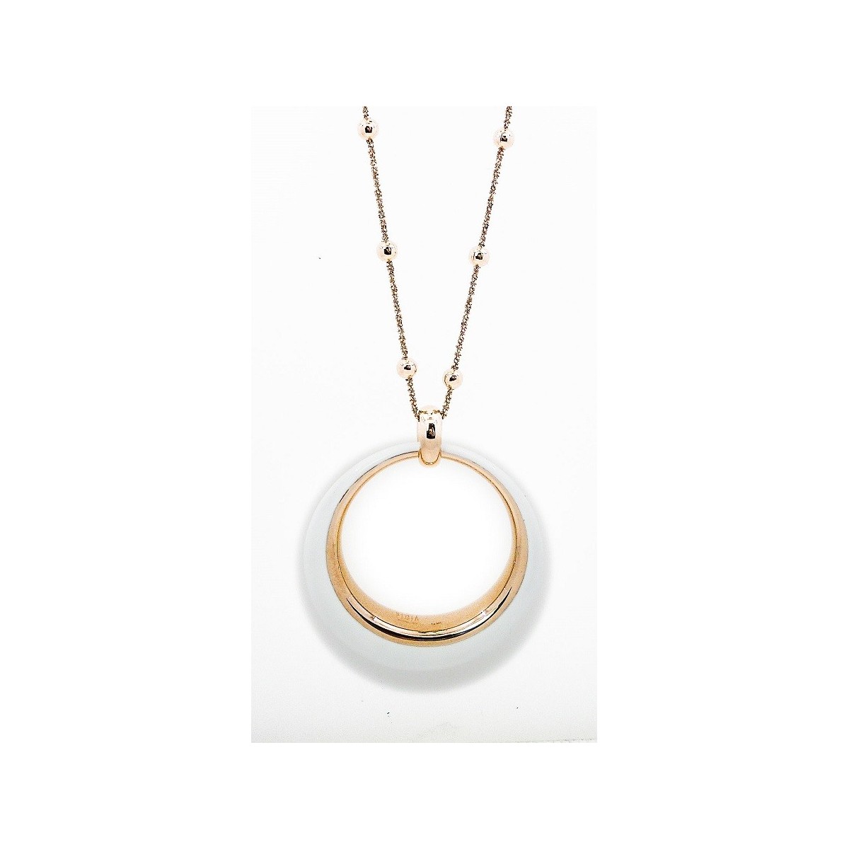 Lange Silberkette 925 Palccato stieg Gold, durchsetzt mit Kugeln und mit weißem Emaille runden Anhänger
