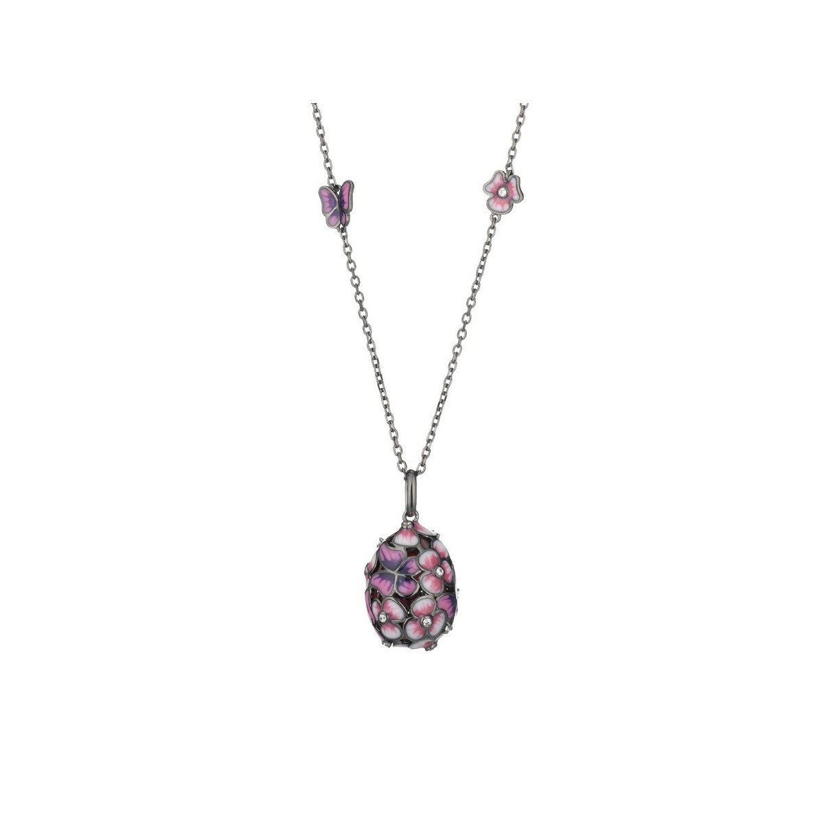 Anhänger Eier mit Kettenhalskette mit Blumendekorationen aus der Tamara Kollektion 925 poliert Silber, Lila Emaille und Weiße Zirkone - TA P04 B-PI