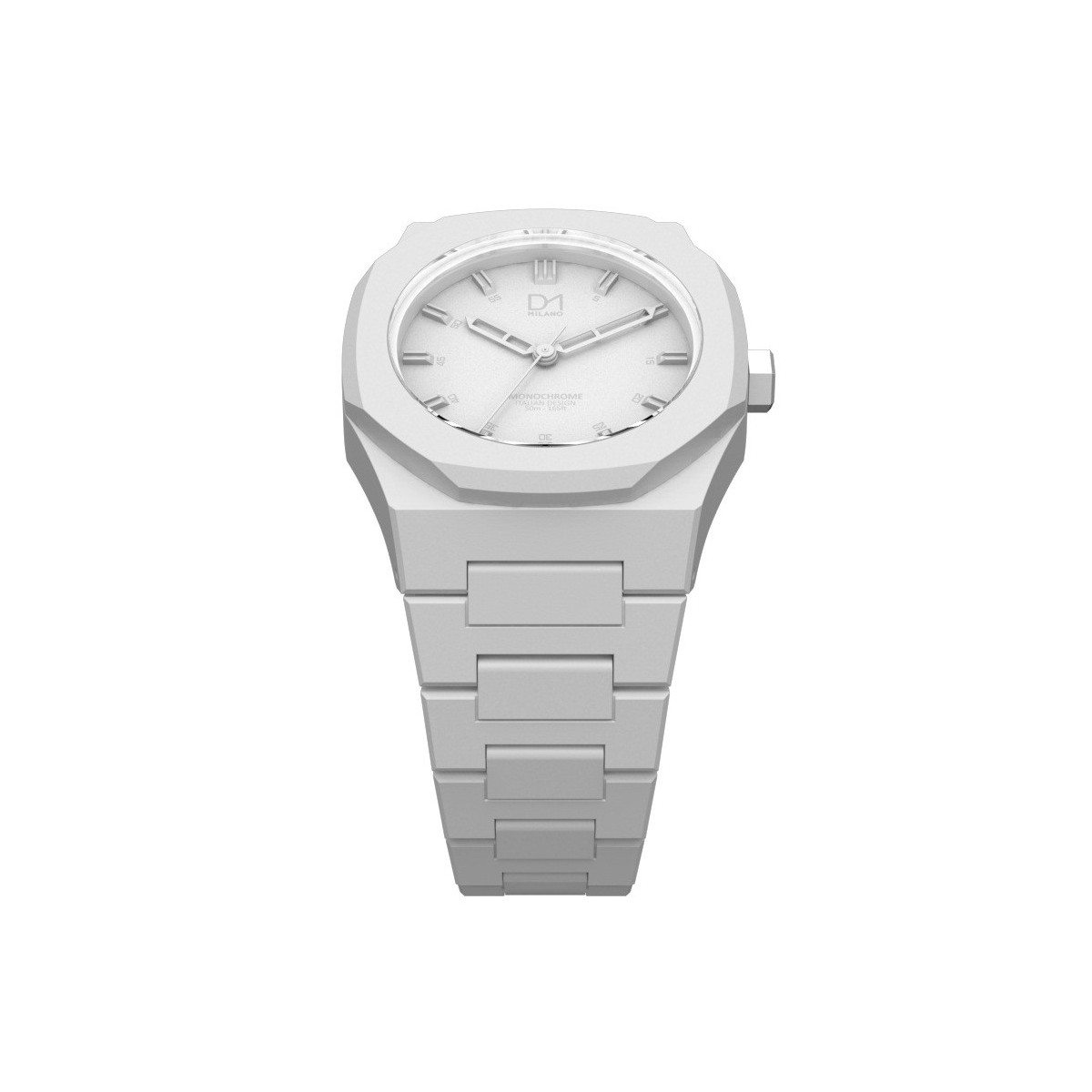 D1-Mailand MONOCHOME-Gehäuse Größe: 40 MM; -Material: Polycarbonat mit Soft-Touch Beschichtung manuell; -Armband: mesh Armband; -Zifferblatt: Gedruckte UV; -Glas: Mineral Composite; -Inhalt: Diamantschliff; -Edelstahl 316 L Schnalle; -Gehäuse: Edelstahl PVD-Version mit vier Schrauben; -Uhrwerk: Miyota nur Zeit; -Lünette: Polycarbonat mit Soft-Touch Beschichtung manuell