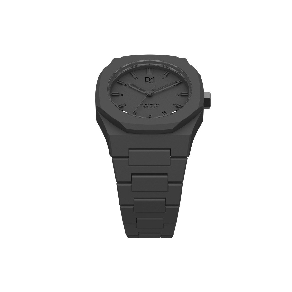 D1-Mailand MONOCHOME-Gehäuse Größe: 40 MM; -Material: Polycarbonat mit Soft-Touch Beschichtung manuell; -Armband: mesh Armband; -Zifferblatt: Gedruckte UV; -Glas: Mineral Composite; -Inhalt: Diamantschliff; -Edelstahl 316 L Schnalle; -Gehäuse: Edelstahl PVD-Version mit vier Schrauben; -Uhrwerk: Miyota nur Zeit; -Lünette: Polycarbonat mit Soft-Touch Beschichtung manuell