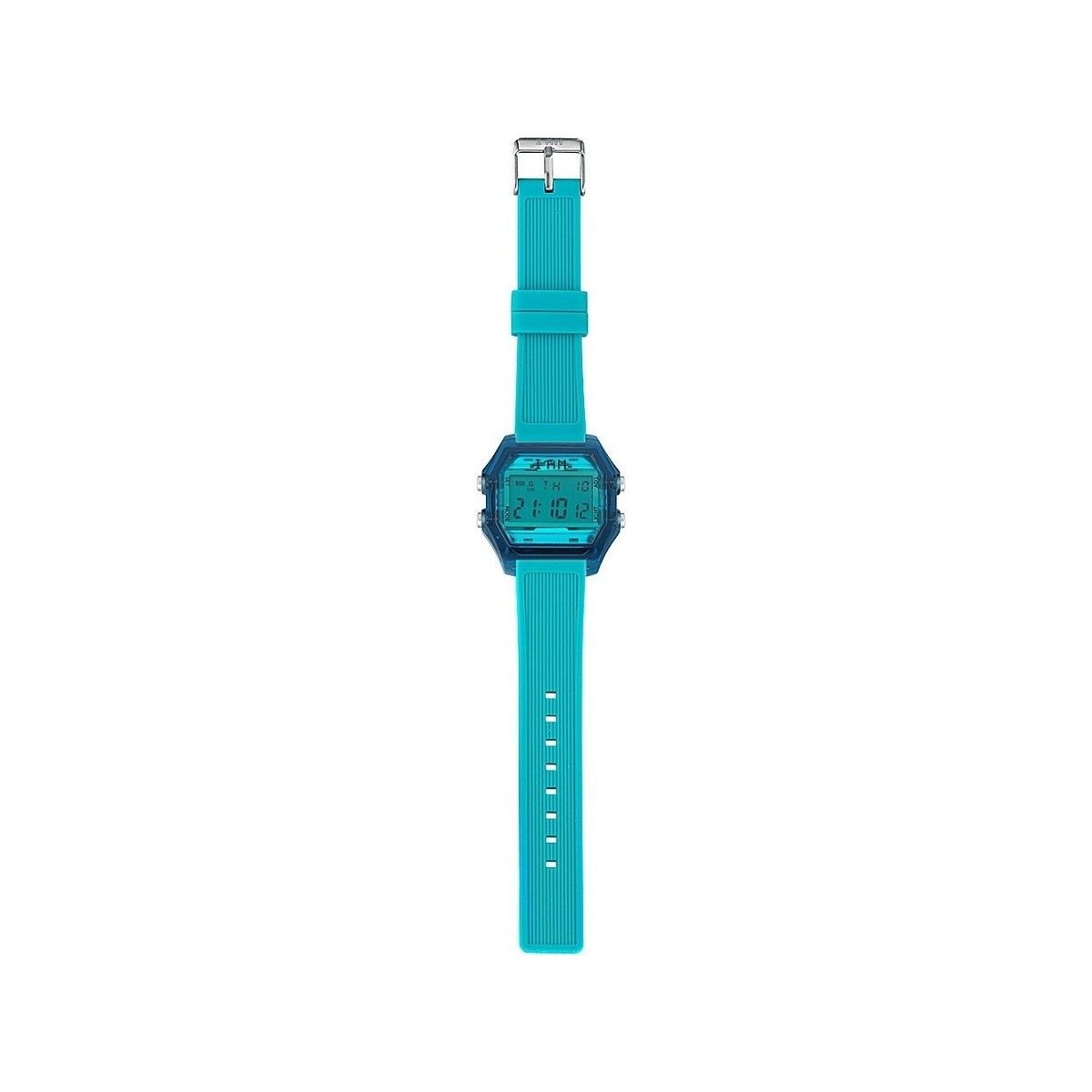 I AM Herren Digitaluhr mit transparentem Polycarbonatgehäuse, blauer Farbe mit blaugrünem Glas und hellblauem Silikonarmband mit Stahlschnalle. Funktionen: Monat, Datum, Morgen / Nachmittag, Licht, Klingelton, Stoppuhr, Zeitsignal, 12/24-Stunden-Zeitplan. Die Wasserbeständigkeit beträgt 5 atm. Uhr mit J8519 Digitalwerk ausgestattet. Uhr zusammengesetzt aus Bargeld Ref. IAM-107 E Gurt Art.-Nr. IAM-307.