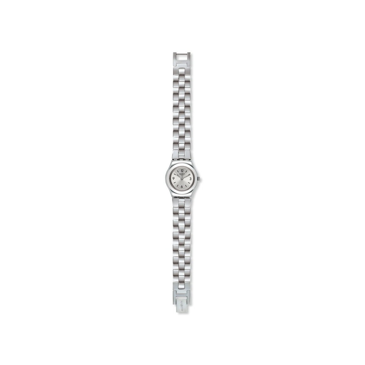 Swatch Step Uhr aus der I Lady Kollektion mit nur Zeit Quarzwerk, silberfarbenem Stahlgehäuse und 25 mm runder Form und silberfarbenem Stahlarmband