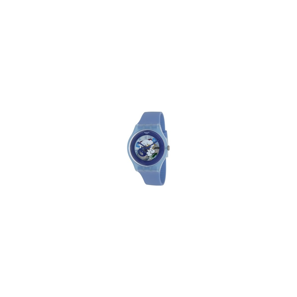 Transparent und blau Zifferblatt mit Silikon zu sehen, Zahnräder, Ring und blauen satin und transparente Fall blauen Band