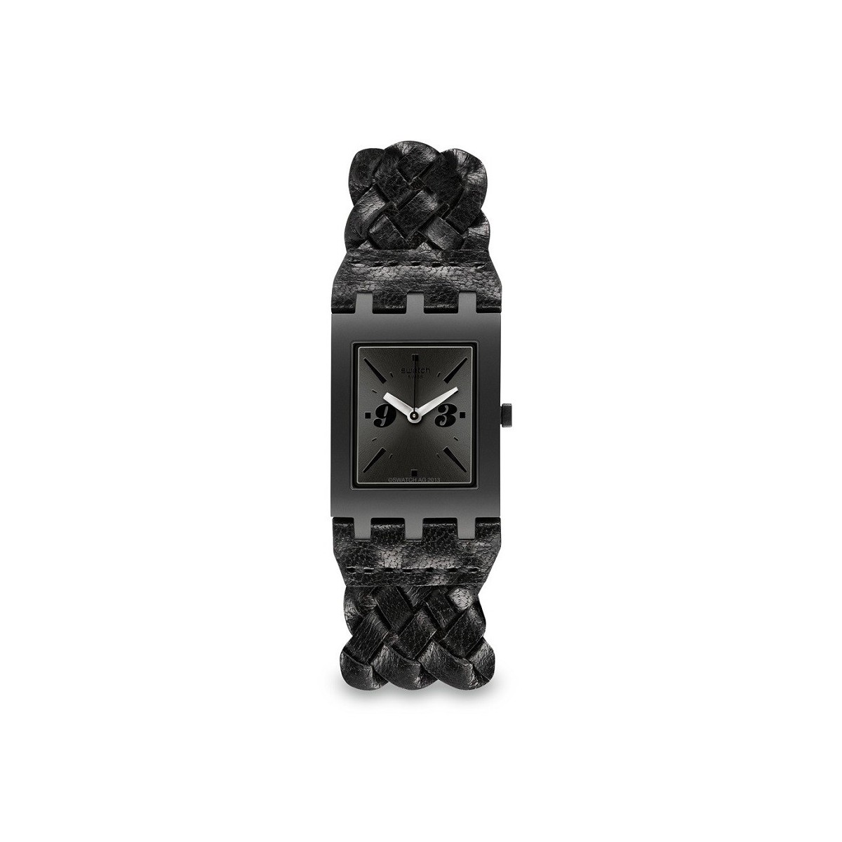 Gewebte Leder-Armband-Uhr, schwarzes Zifferblatt und schwarzen Kunststoff-Gehäuse