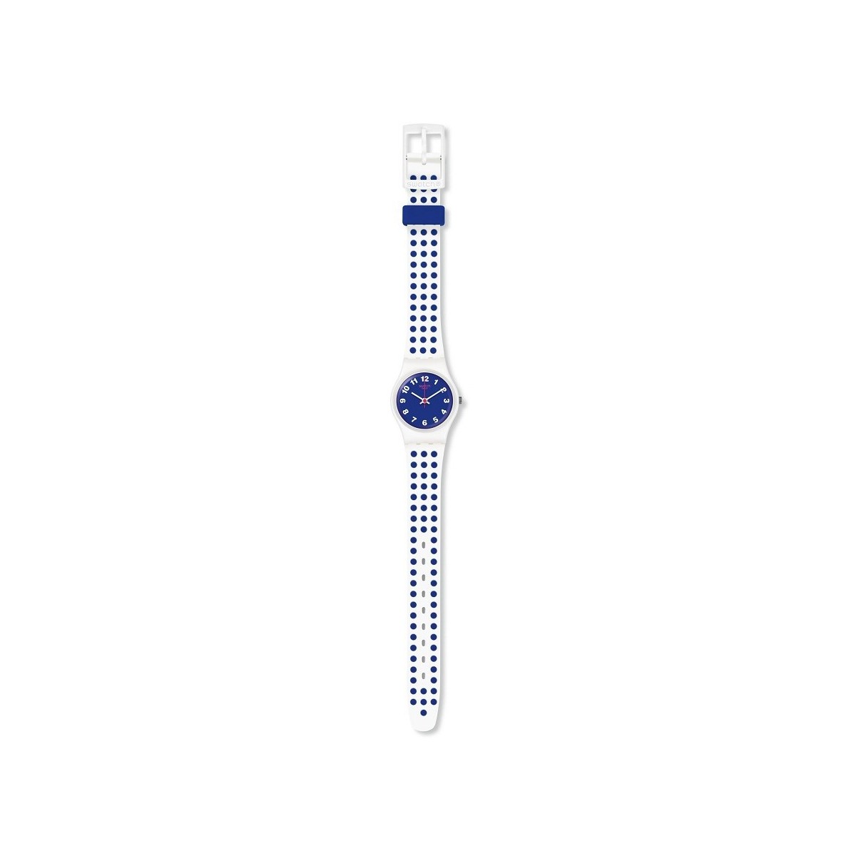 Lady BLUEDOTS 25 mm Unisex kleine Kollektion Die Swatch Vibe, mit blauem Zifferblatt und weißen Indexen, Kunststoffgehäuse und Silikonarmband; Quarzwerk