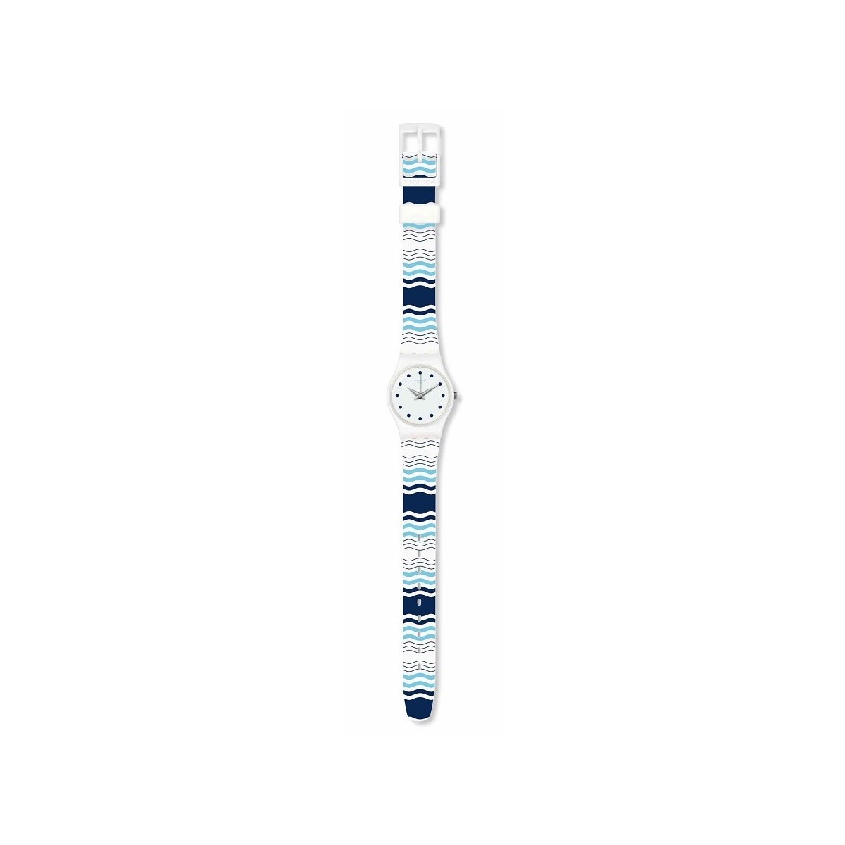 Lady VENTS ET MAREES 25 mm Unisex kleine Sammlung Mediterrane Ansichten, mit weißem Zifferblatt und blauen Indexen, Kunststoffgehäuse und Marine Fantasy Silikonarmband; Quarzwerk