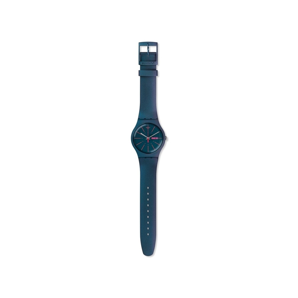 Unisex-Quarzuhr mit Polycarbonat-Gehäuse und Silikonarmband, blaugrünem Zifferblatt und pinkfarbenen Zeigern mit Datumsanzeige, Linie New Gent