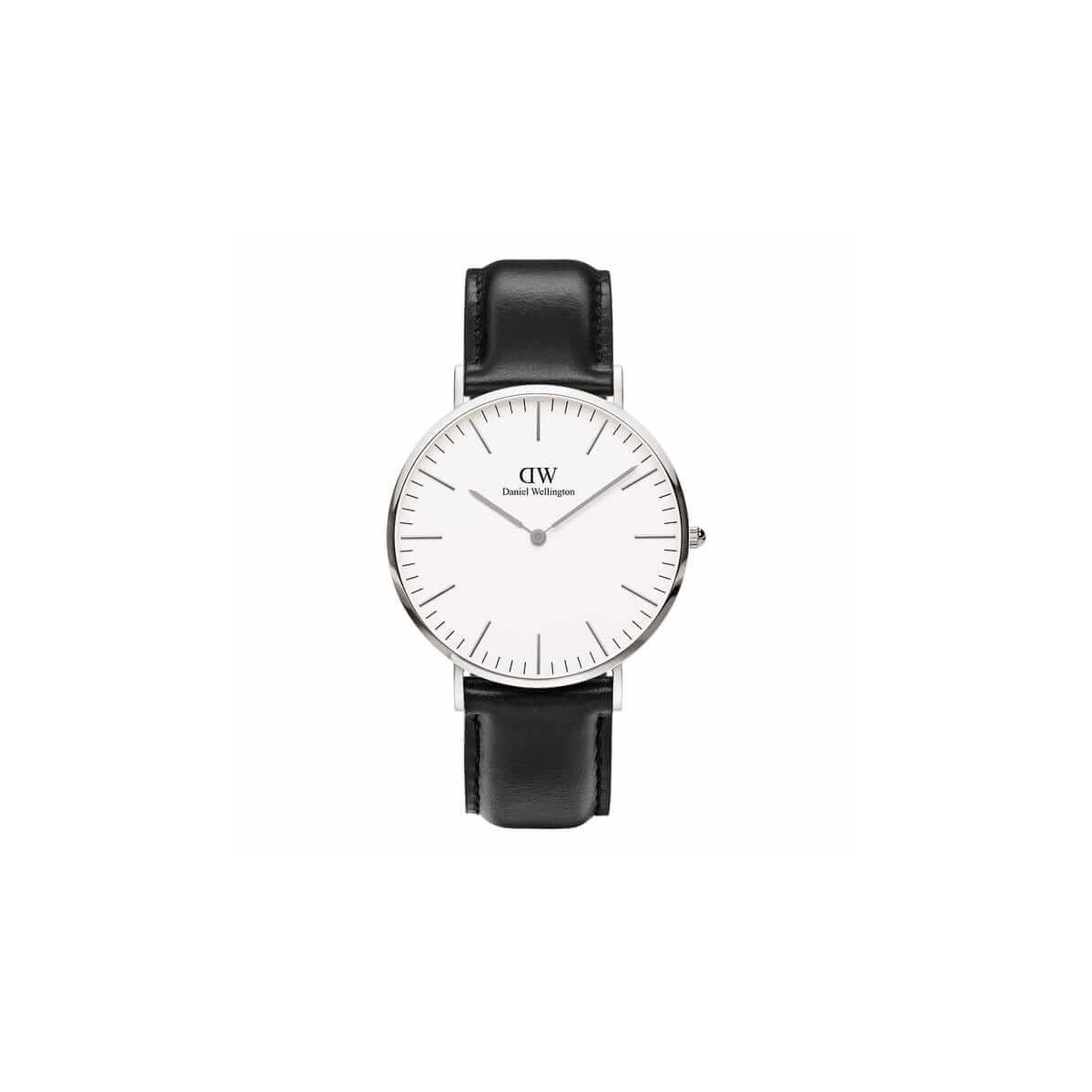 Herrenuhr aus der Classic-Kollektion mit rosafarbenem Stahlgehäuse mit weißem Eierschalenzifferblatt mit rosafarbenen Indexen und Zeigern und schwarzem Lederarmband, Quarzwerk. Diese sehr dünne (6 mm) Daniel Wellington Uhr kann mit austauschbaren Armbändern an jeden Anlass angepasst werden. Sie haben für jeden Tag der Woche eine einzigartige und andere Uhr.