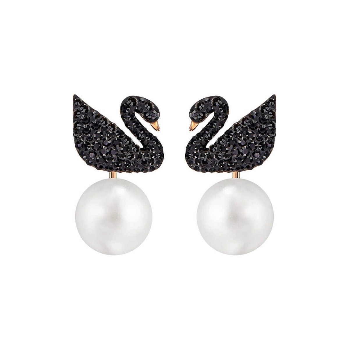 Black Swan Swarovski-Ohrringe mit weißem Icon Swan-Perlenanhänger
