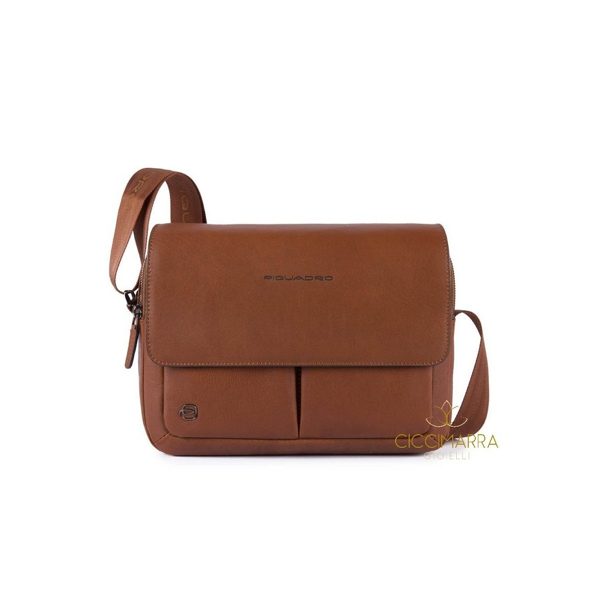 PIQUADRO MESSENGER SMALL BLACK QUADRATISCHE LEDERKOLLEKTION