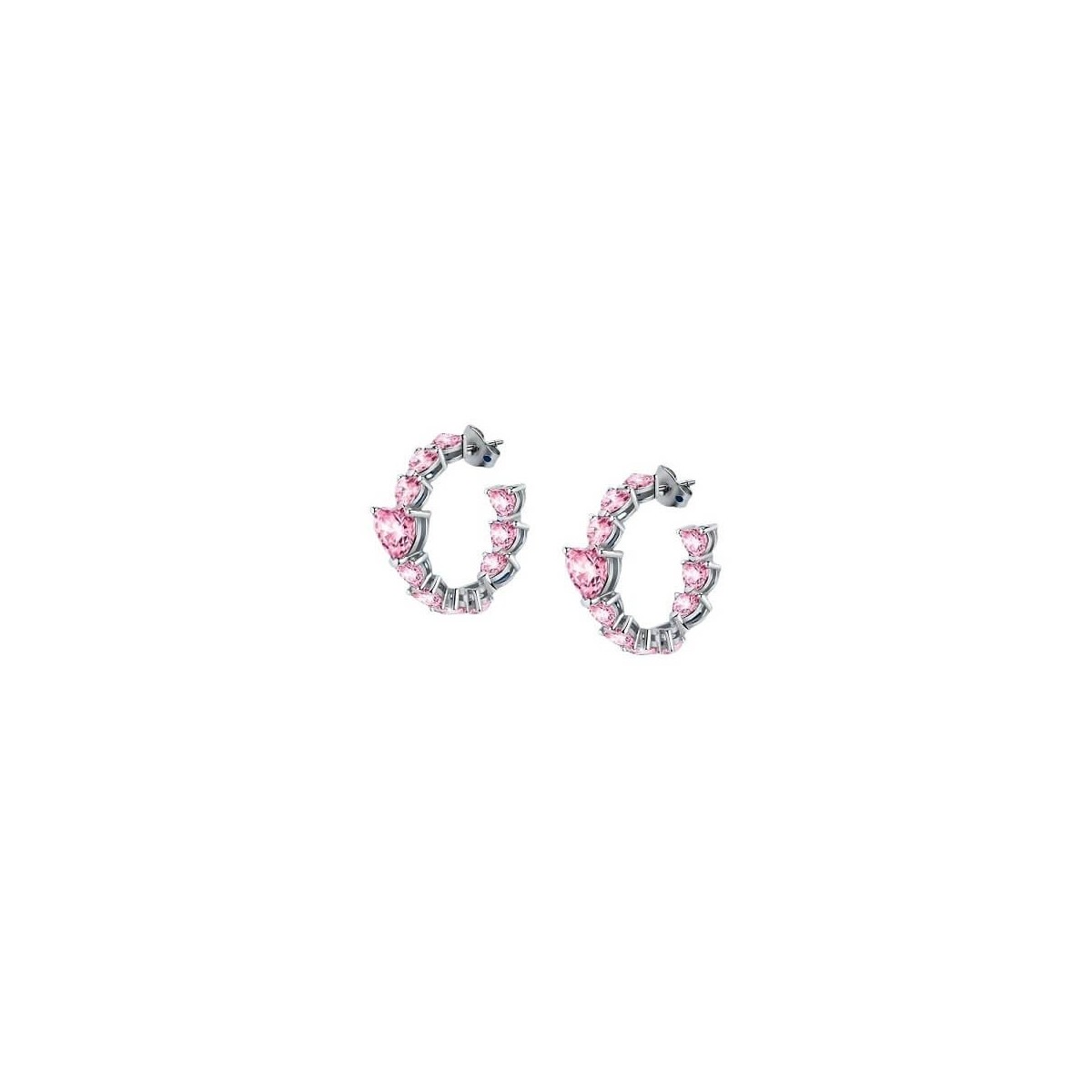 Creolen signiert von der bekannten Influencerin Chiara Ferragni aus der Infinity Love Kollektion. Aus rhodiniertem Stahl, mit rosafarbenen Zirkonen im Herzschliff.