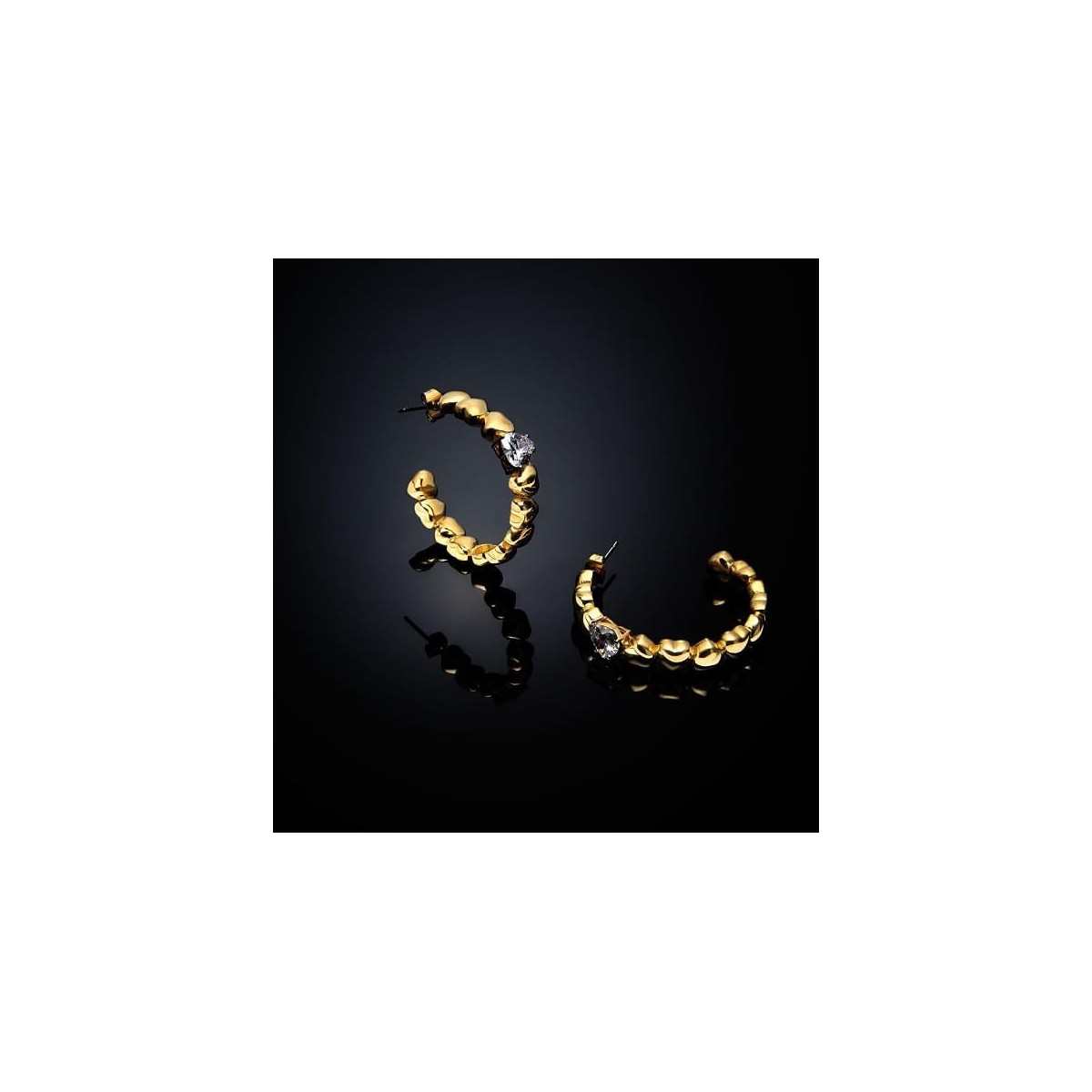 Goldene Kreisohrringe aus der Cuoricino-Kollektion aus vergoldetem Stahl und Zirkonen im Herzschliff