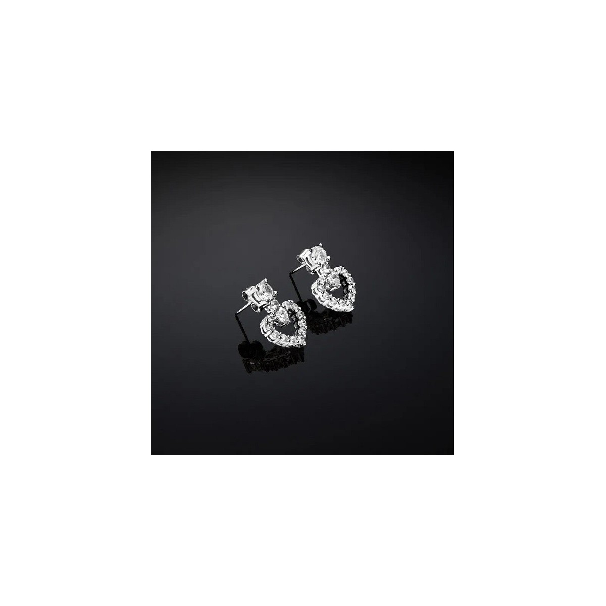 Ohrhänger aus der Infinity Love-Kollektion mit herzförmigen weißen Zirkonen. Butterfly-Verschluss