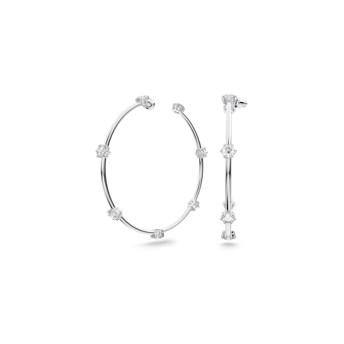 Große Damen-Creolen, Constella-Linie, rhodiniert und mit kleinen weißen Swarovski-Kristallen verziert.