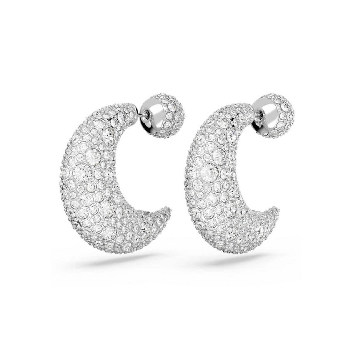 Das Schmuckstück verfügt über ein Paar Halbmonde, die mit einem Pavé aus Cry-Kristallen unterschiedlicher Größe verziert sind, um einen stärkeren Glitzereffekt zu erzielen, und eignet sich perfekt zum Tragen von morgens bis abends.