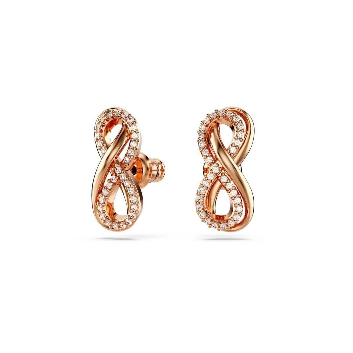 Damen-Ohrstecker von Swarovski aus der Hyperbola-Kollektion mit Rosévergoldung und einem Unendlichkeitssymbol, verziert mit kristallklarem Pavé.