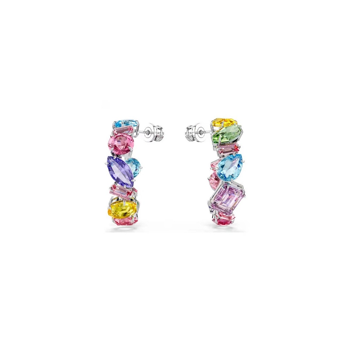 Ohrringe im Mischschliff, Linie Gema, rhodiniert und mehrfarbige Kristalle. Pin-Verschluss.