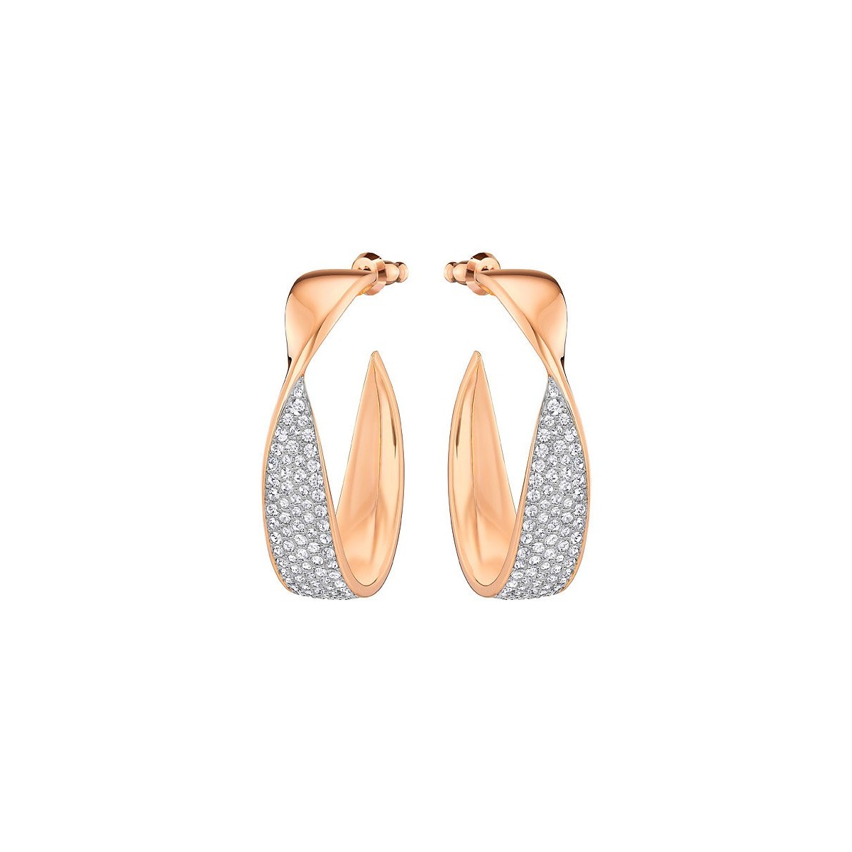 Profil, grundlegende und feminin. Rosa gold plattiert Ohrringe, die teilweise mit klares Kristallpavé verziert werden ein Funkeln zu Ihrem Tag-Outfit dosiert hinzufügen. Die Juwelen, die Sie messen 3,5 cm und sind sehr kompatibel mit anderen Swarovski-Kreationen.