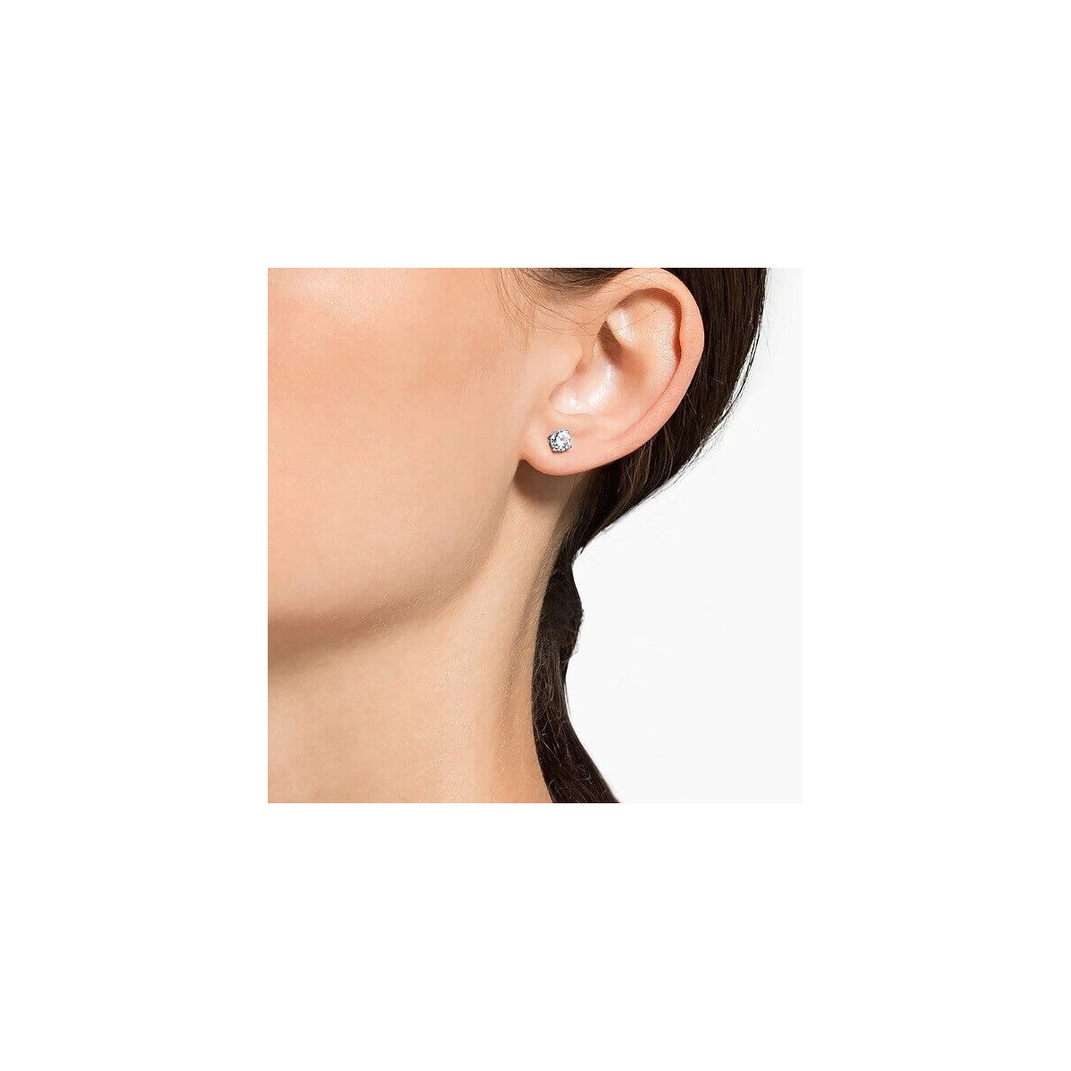 Light-Point-Lobe-Ohrringe mit weißem, farblosem Kristall, klauenmontiert und mit Schraubverschluss