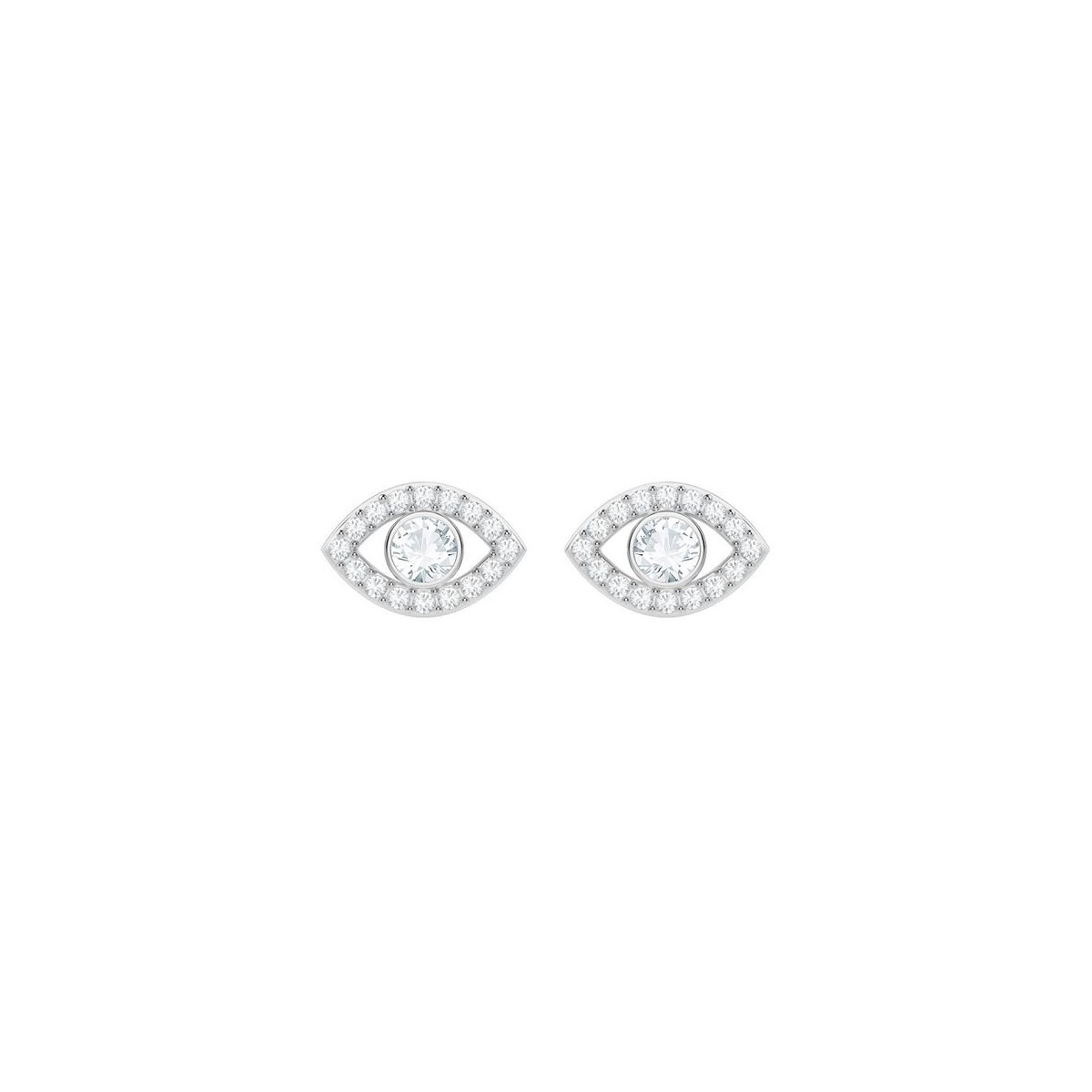Ohrstecker mit Augenmotiv und Glücksbringer, aus rhodiniertem Metall mit Kristallpavè und Nagelbefestigung