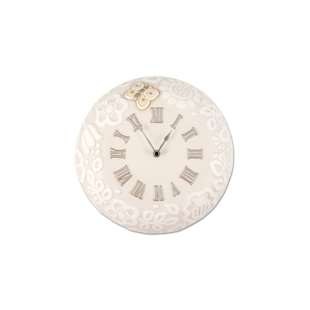 Thun Wand Uhr Prestige. 27 x 27 cm Keramik Uhr mittelgrau mit weißen geprägte designs