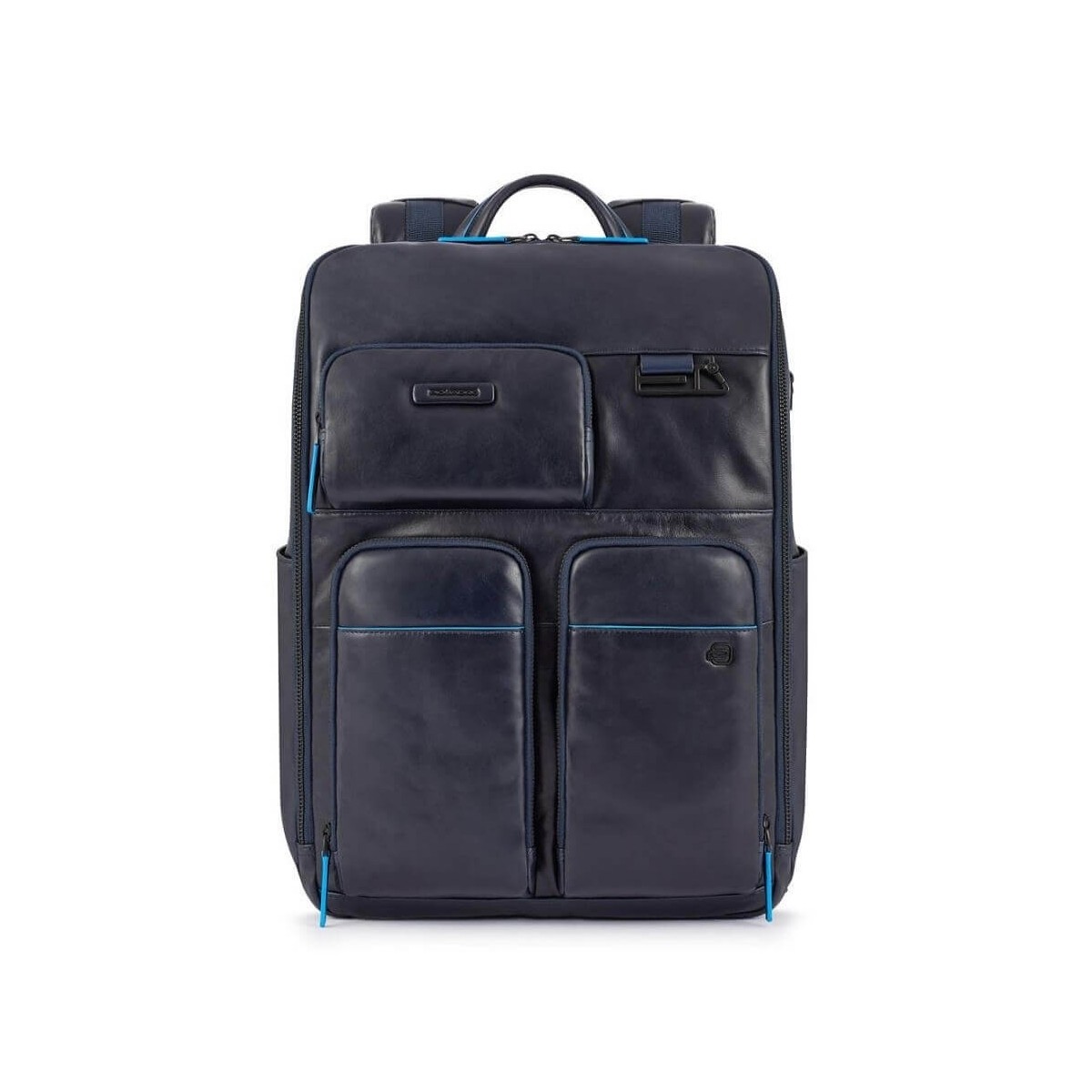 Piquadro Rucksack Blue Square Line aus blauem Leder mit Vordertaschen
