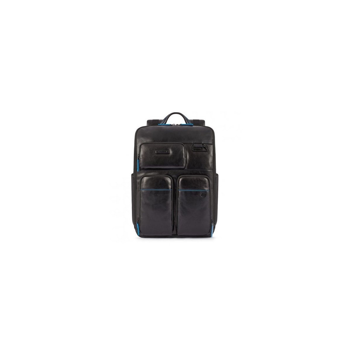 Piquadro Rucksack Blue Square Line aus schwarzem Leder mit Vordertaschen