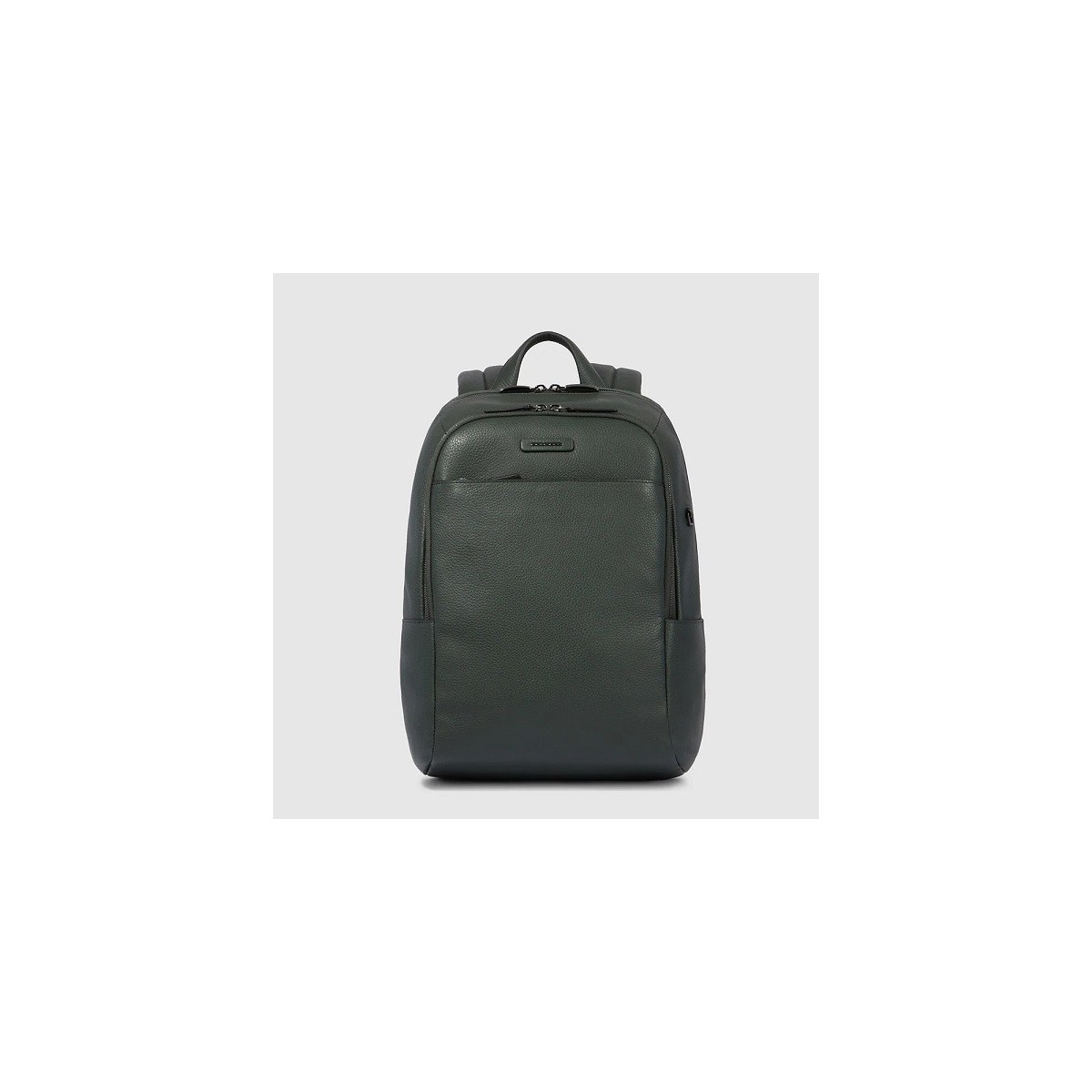 Piquadro-Rucksack aus grünem Leder mit Vordertaschen
