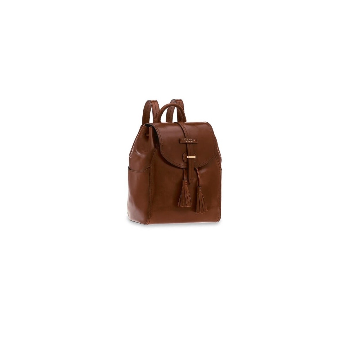 Der Rucksack der Linie Bridge Florentin mit praktischem und essentiellem Design aus hellbraunem Leder mit gefüttertem Fach, das durch Klappe und Kordelzug geschlossen wird.