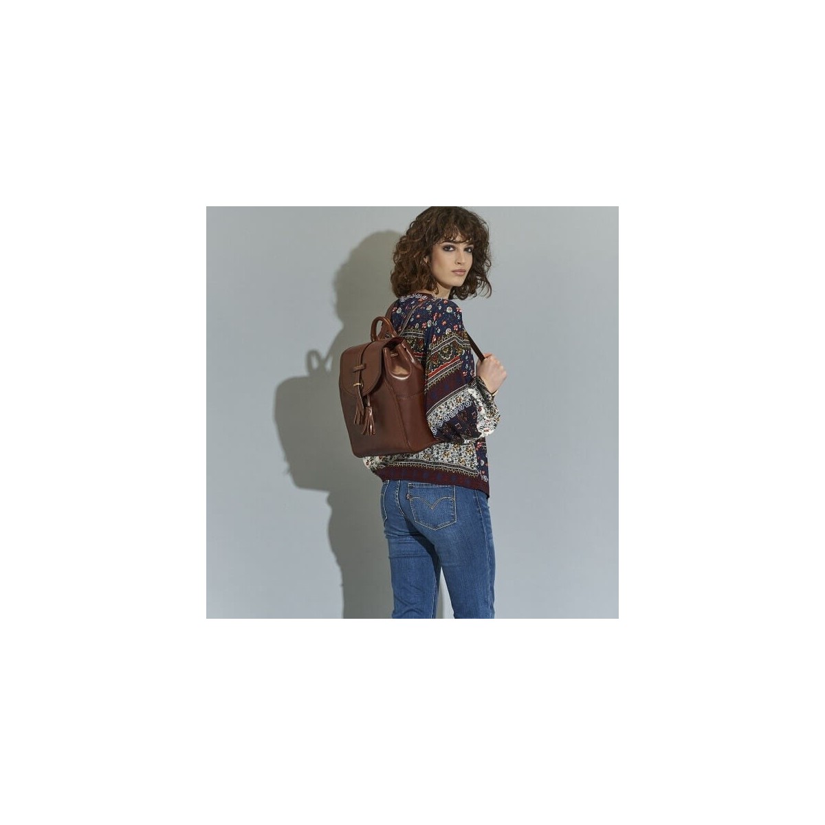 M Florentin The Bridge Rucksack aus echtem hellbraunem Leder perfekt für Reise und Freizeit, mit gefüttertem Fach mit Klappe und Kordelzug. Mit Innentasche, verstellbaren Schultergurten, Manschette und Zierquasten.