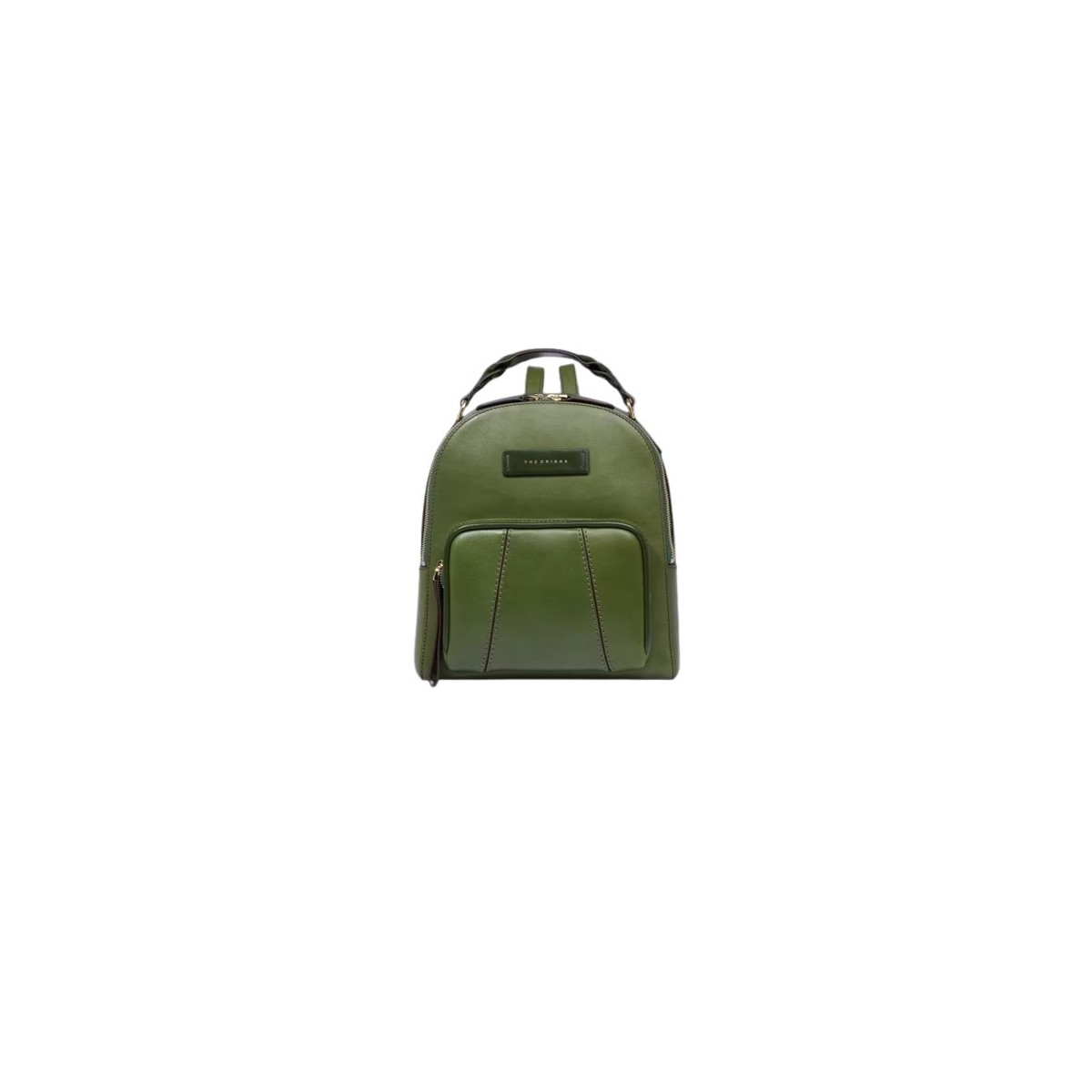 Rucksack der Brigida-Linie aus echtem grünem Leder mit Vordertasche und Reißverschluss.