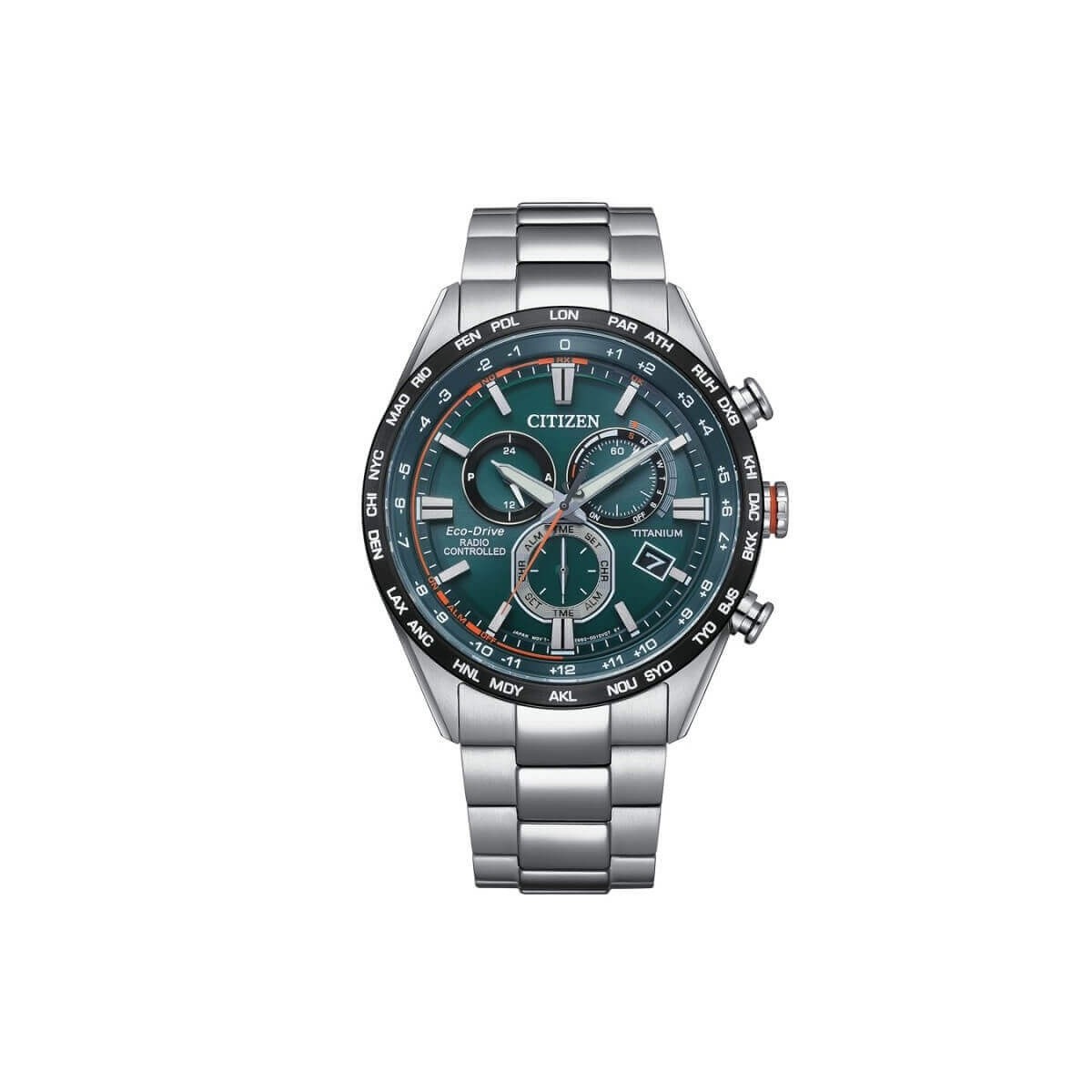 Citizen Herrenuhr, aus der Kollektion H 660 Super, mit 5-Kanal-Funkfunktion: Sie empfängt das Zeitsignal der USA, Europas, Chinas und Japans und mit Eco-Drive-Uhrwerk, Solar mit Gangreserve von bis zu 10 Monaten oder 3 Jahre im Energiesparmodus.