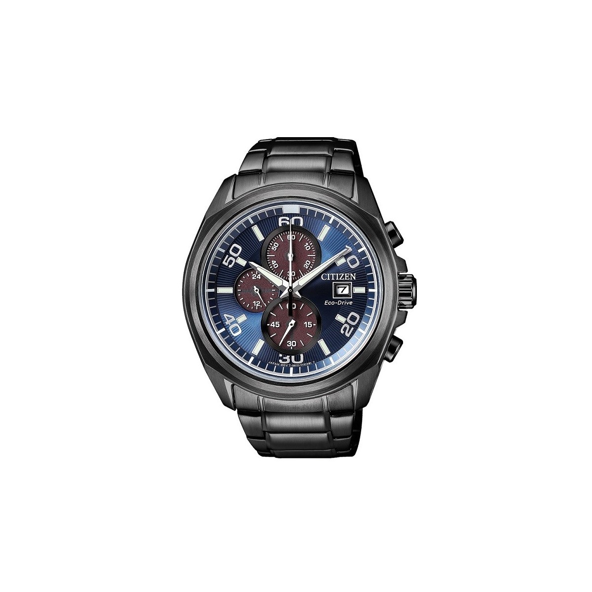 Crono0630 Herrenuhr mit Edelstahlgehäuse mit unteren Schrauben, Edelstahl-Armband, Bewegung, Eco-Drive auf Licht mit einer Gangreserve von 270 Tagen, blaues Zifferblatt und 1/5 sec Chronographenwerk lädt. bis zu 60 Minuten.