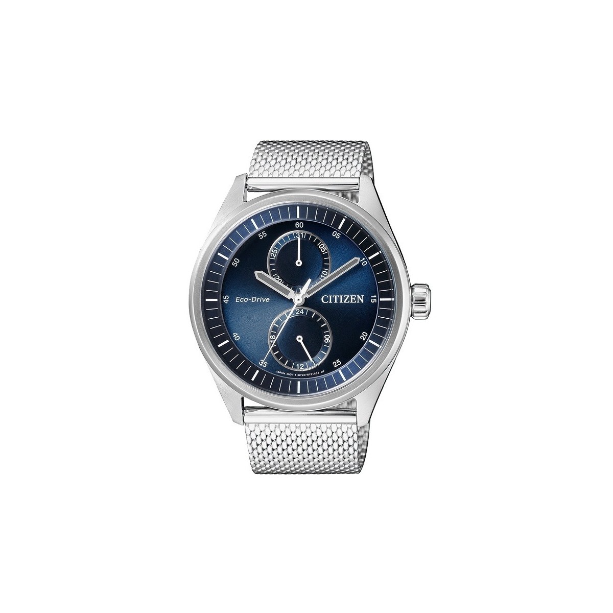 Herren stilvolle Metropolitan Multifunktion mit Stahlgehäuse mit unteren Schraube und Stahl Armband. Farbe Blau Zifferblatt Eco Drive-Bewegung in Licht lädt mit 180-Tage-Gangreserve