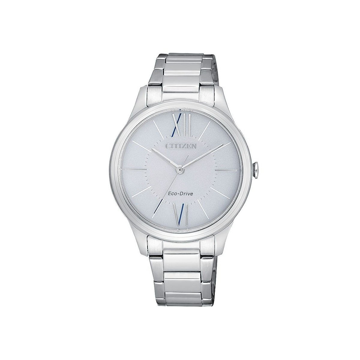 Solar Uhr mit nur Zeit Citizen Eco-Drive Collection Stahlgehäuse und Armband, White Dial und Silber Hände.