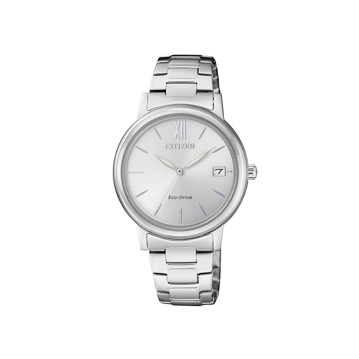 Damenuhr mit Edelstahl-Armband und Gehäuse, Farbe weiß, Eco-Drive-Bewegung in Licht lädt mit 180-Tage-Gangreserve, nur Zeit.