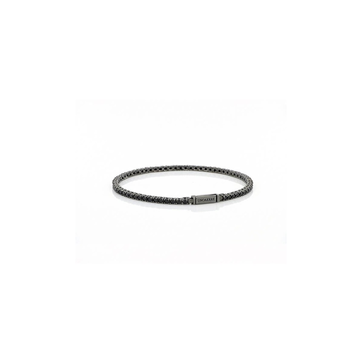 Unisex-Armband Unoaerre Tennismodell, Neuheitskollektion, aus 925er Silber mit Rutheniumbad, gekennzeichnet durch schwarze, quadratisch geschliffene Zirkonsteine und Kastenverschluss mit Logo. Länge 20 cm